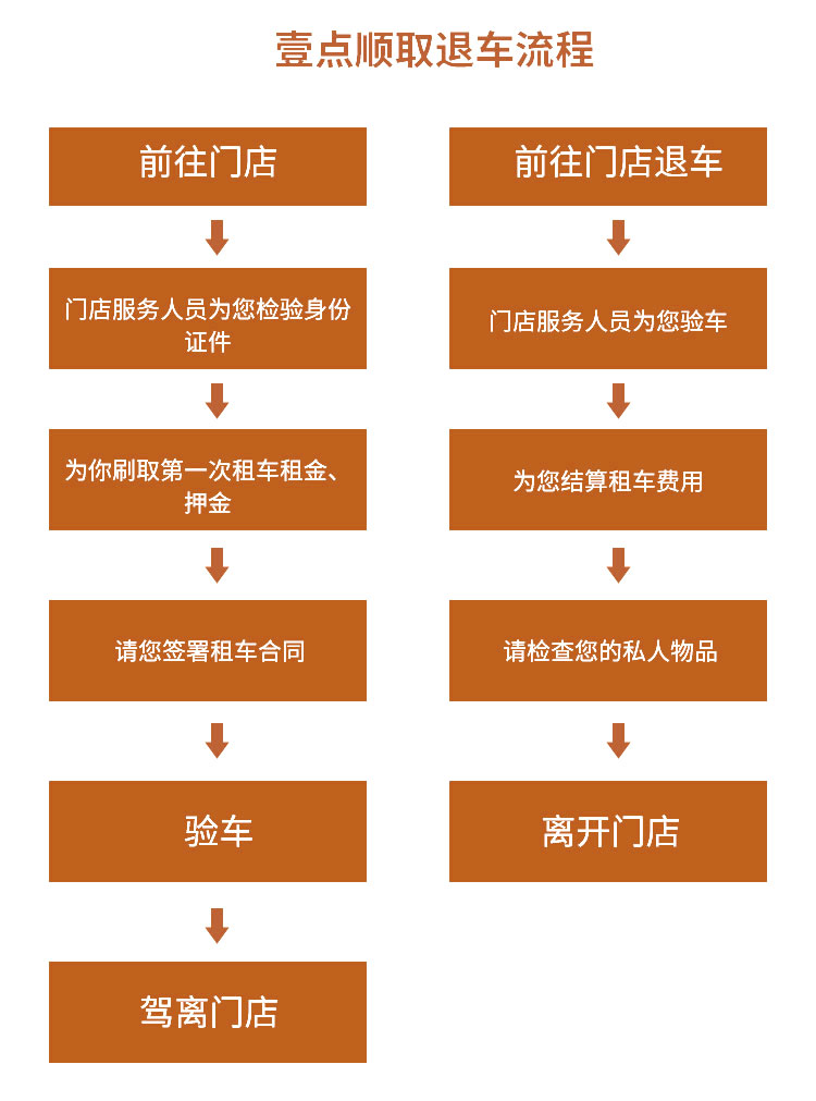 1、離開(kāi)門(mén)店前,請(qǐng)先熟悉租用車輛的安全性能,危險(xiǎn)警示燈、門(mén)鎖、門(mén)頭以及備胎。 2、壹點(diǎn)順汽車接受信用卡及國(guó)內(nèi)借記卡支付。 3、取車時(shí),請(qǐng)根據(jù)您租車的車型,收取相應(yīng)的租金或押金。 4、還車時(shí),留取2000元違章押金,15日后,無(wú)違章自動(dòng)轉(zhuǎn)賬退款,如有違章,自己處理或代辦。